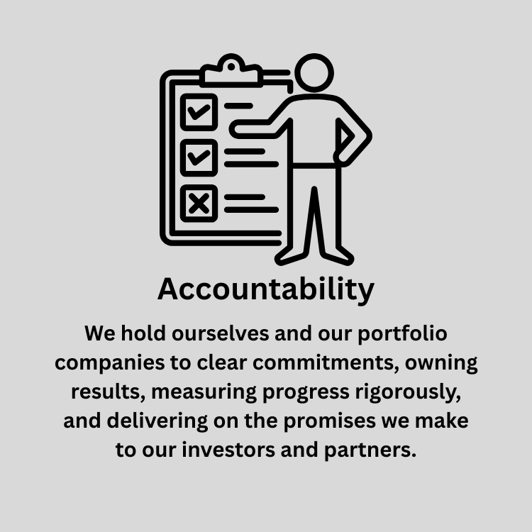 Business investment is, above all, an investment in people. We cultivate authentic, enduring relationships with the companies we back and our co-investors by upholding transparency and deep respect—creating supportive environments where everyone can thrive and contribute meaningfully.